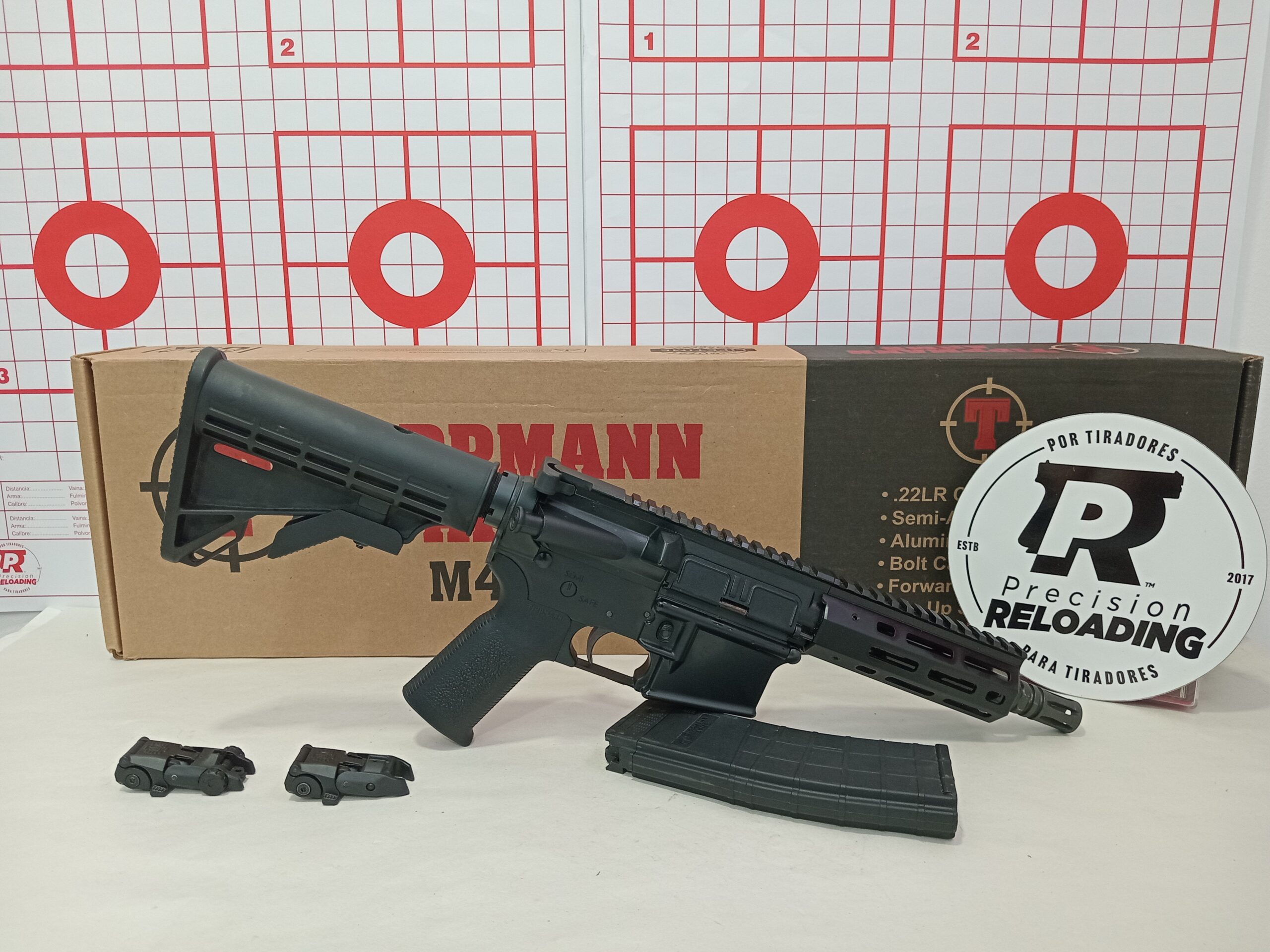 Carabina Tippmann M4-22 calibre 22lr con caja original, incluye kit de mira, usado en impecable estado
