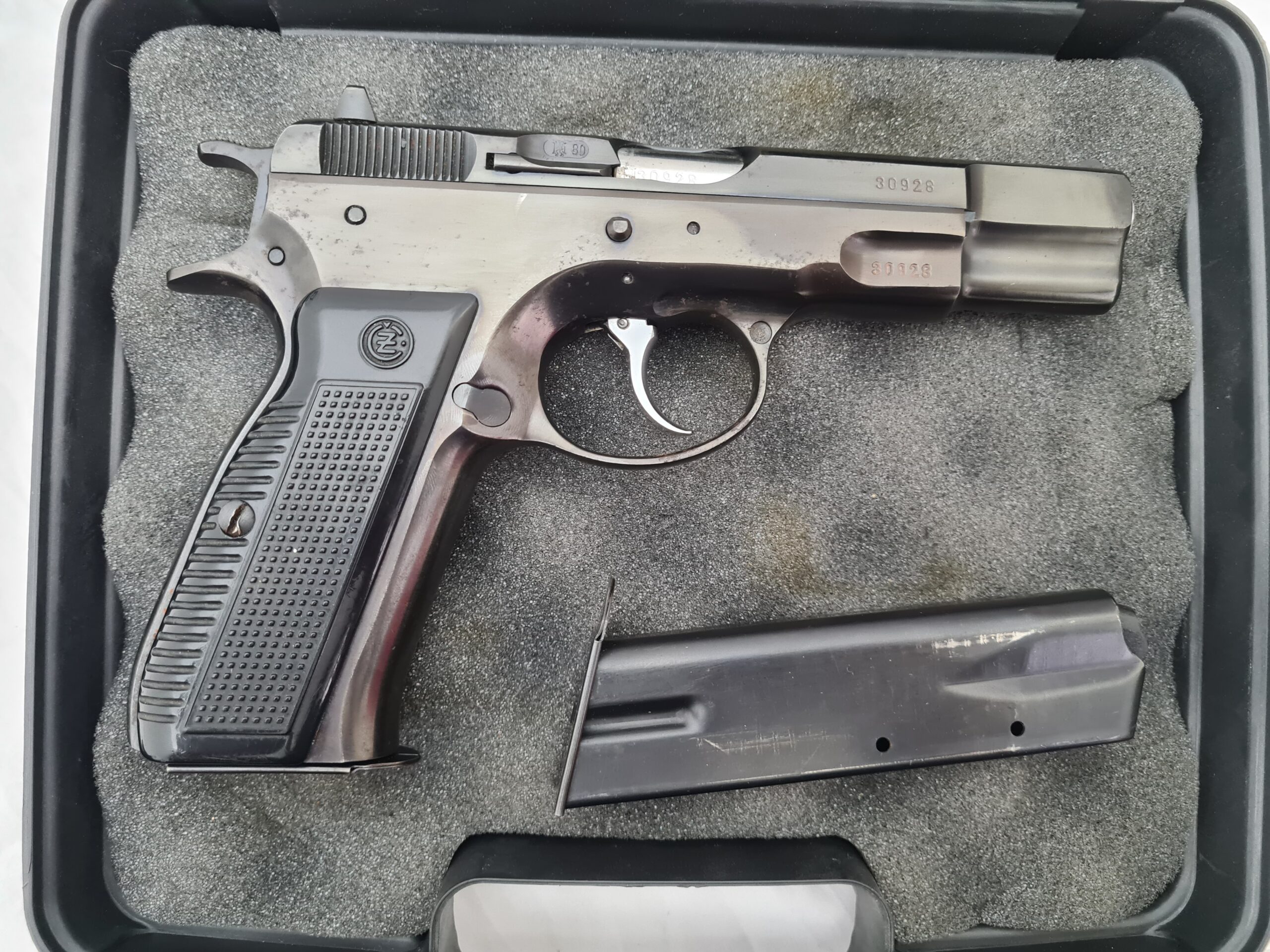 Pistola CZ 75 Calibre 9mm, en muy buen estado con dos cargadores y maletin