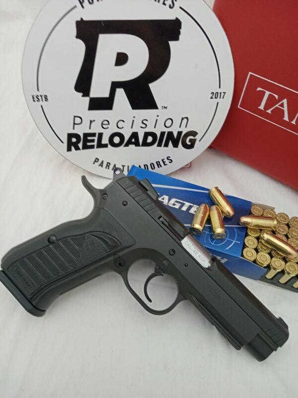 Calibre .45 ACP. Semiautomática. Simple y doble acción. Cañon de 4.5 pulgadas. Capacidad del cargador de 10 tiros. Terminación pavonada. Peso de 1000 grs.