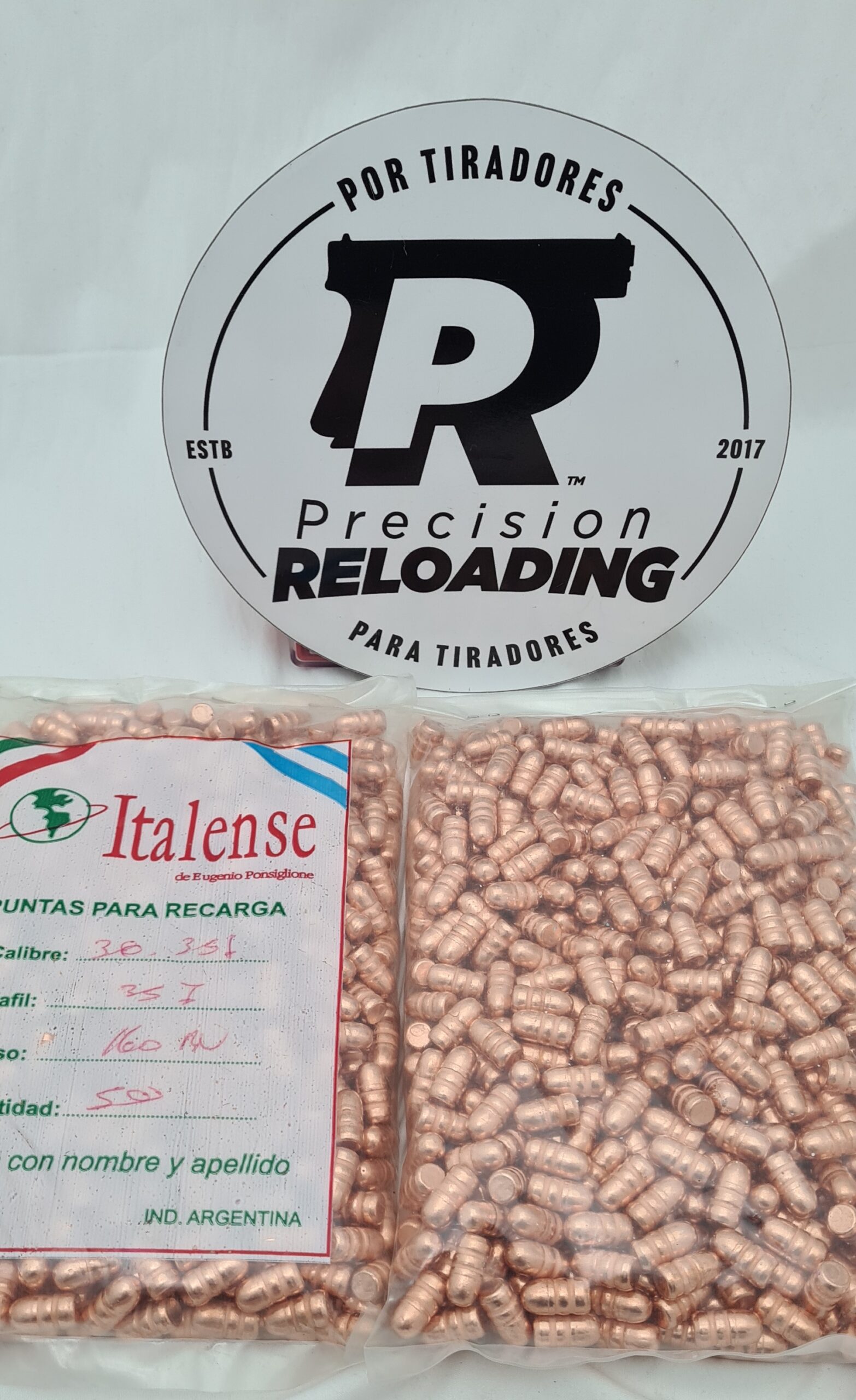 Puntas Ponsiglione cobreadas calibre 357 peso 160gr. Bolsa por 500 unidades. precio por 1000