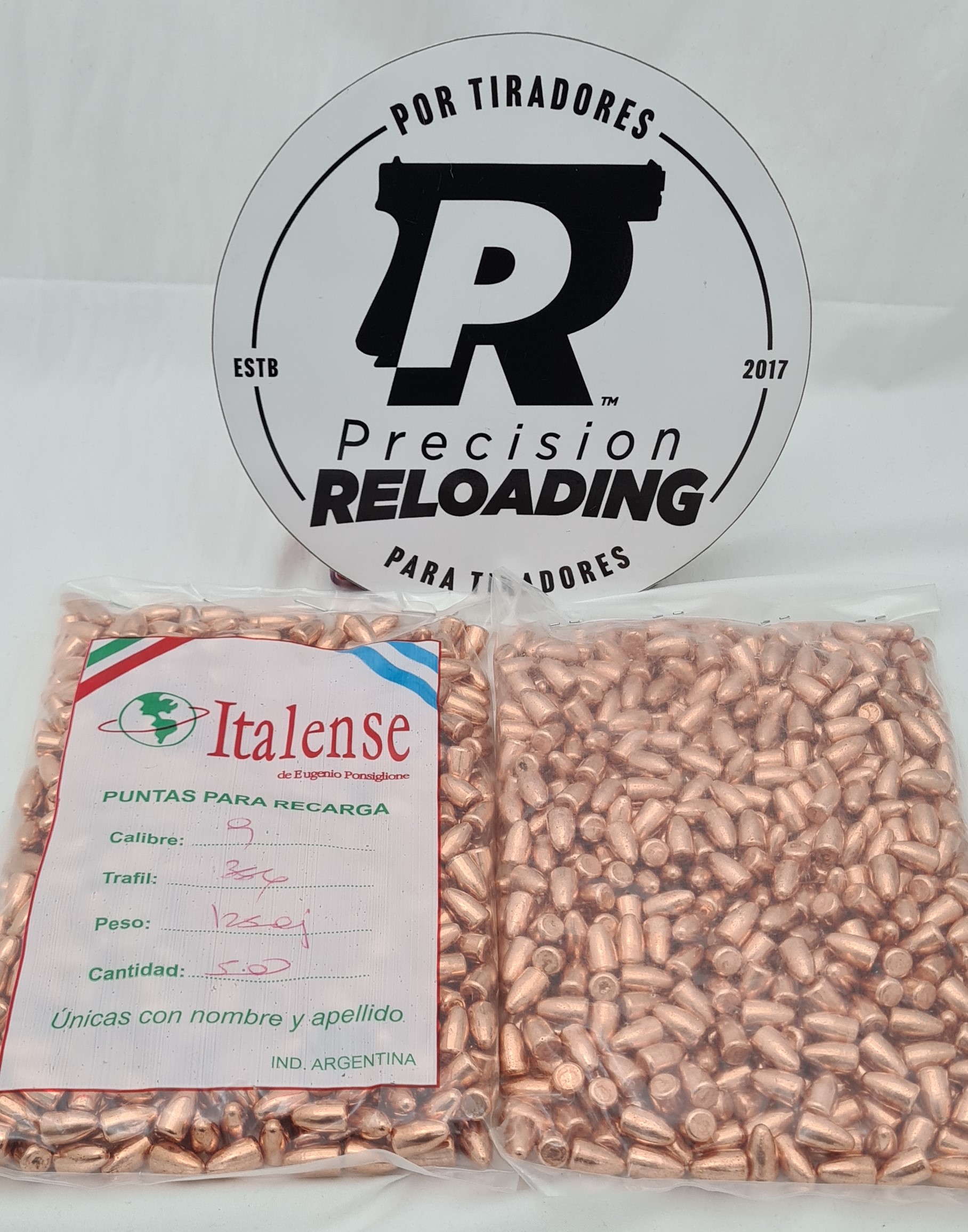 Puntas Ponsiglione cobreadas calibre 9mm peso 125gr. Bolsa por 500 unidades