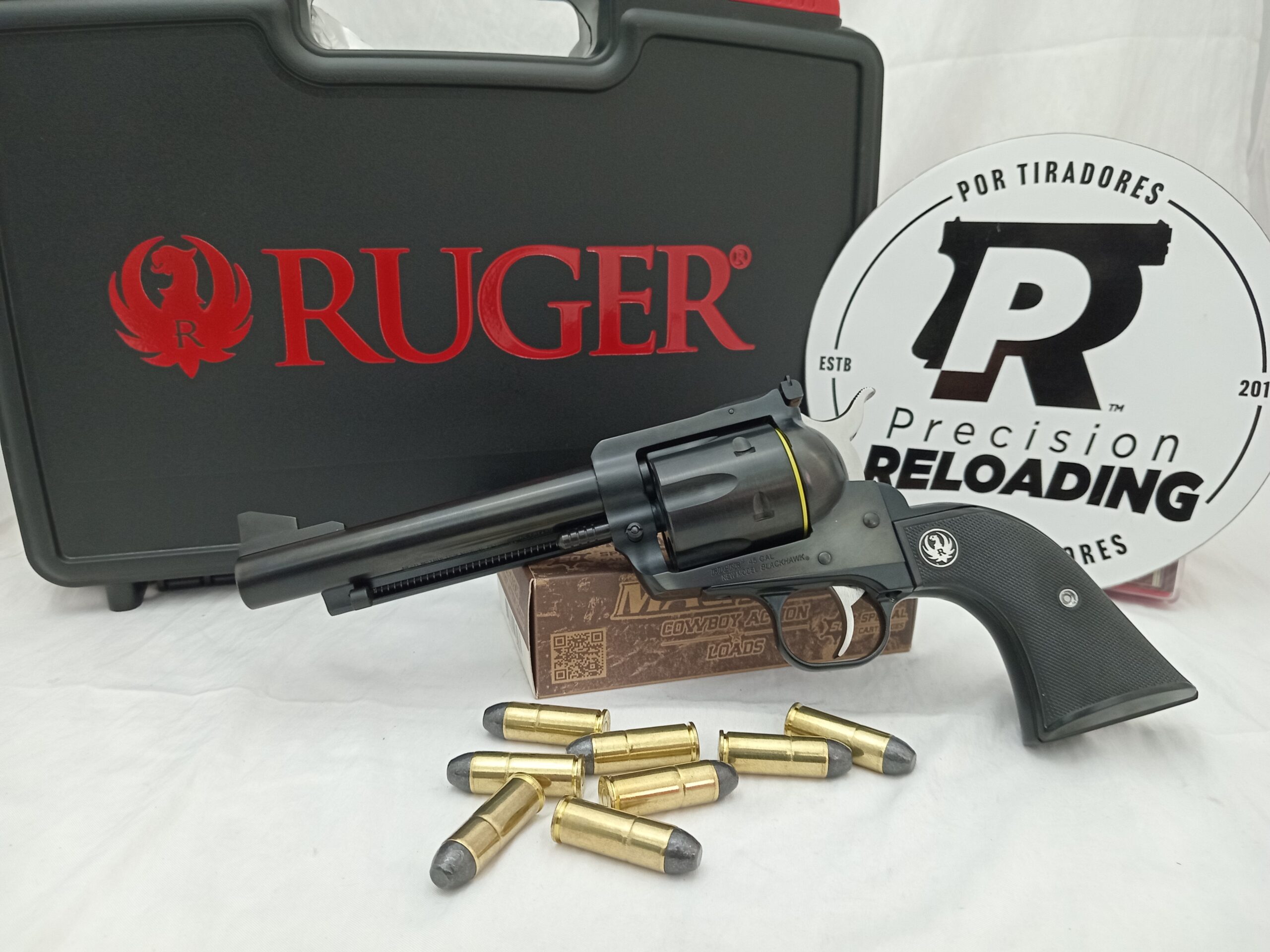 Revolver Ruger New Blackhawk 45 long colt , Alzas regulables, Empuñaduras negras a cuadros de goma dura